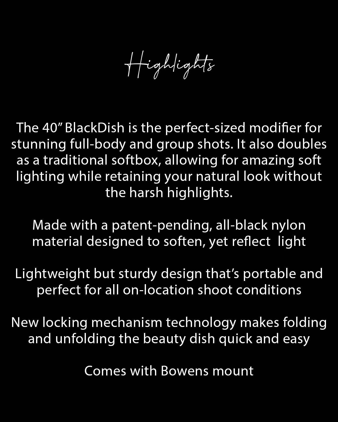 Headshots and full-body shots; a beauty dish and softbox all in one! The BlackDish does it all!